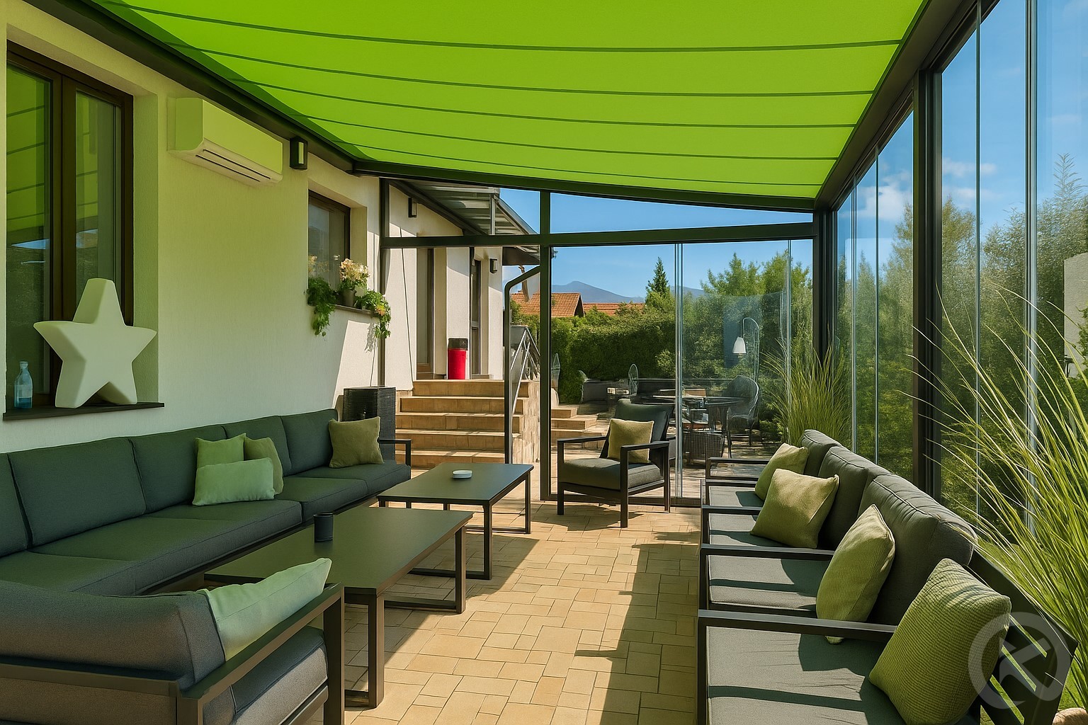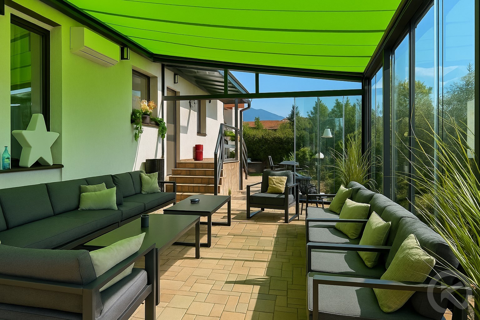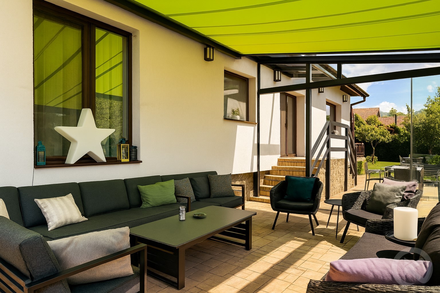 Panorámás „téli kert” terasz