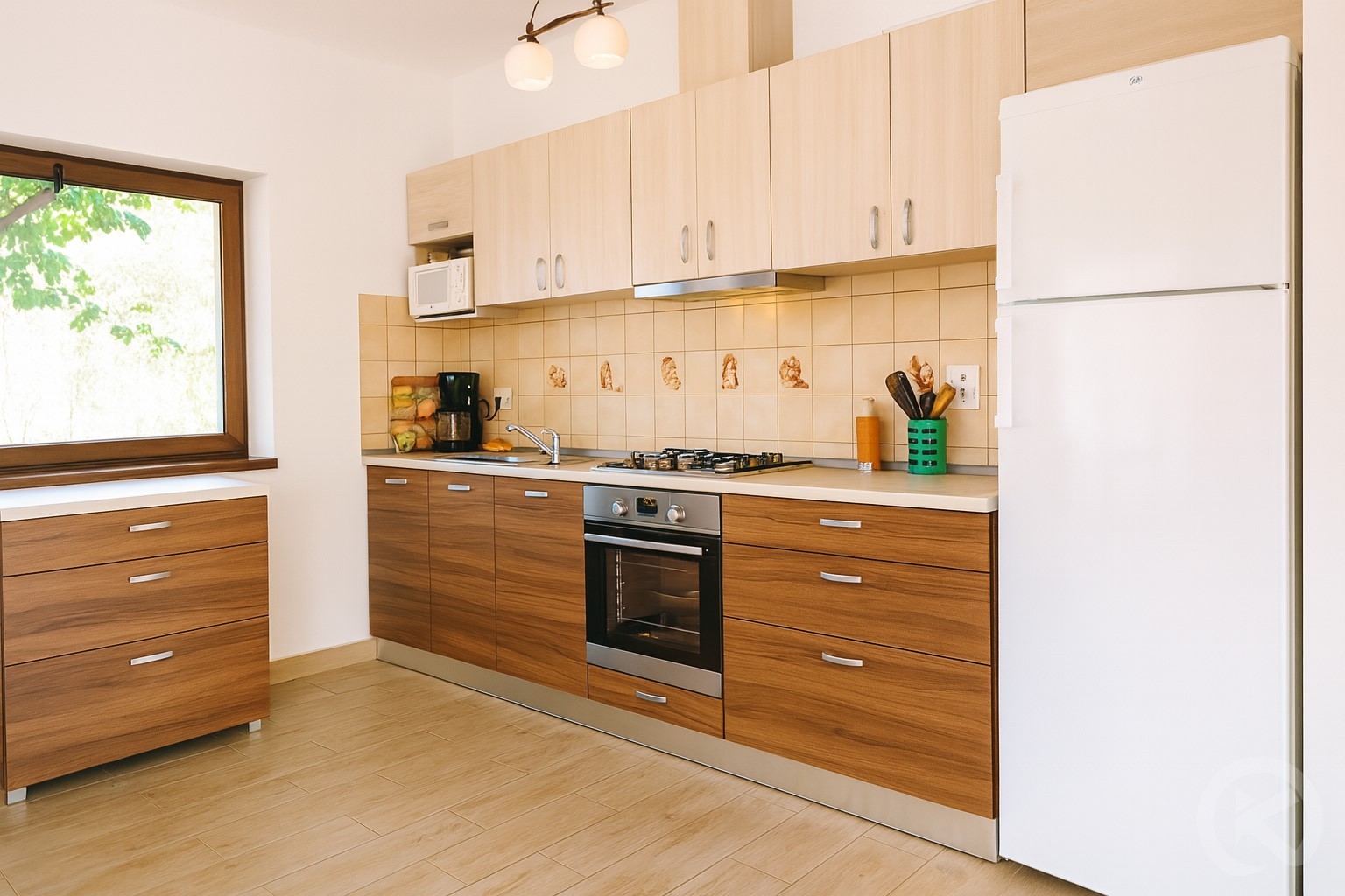 Teljesen felszerelt konyha és tágas közösségi nappali
